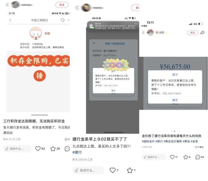 最近,网上不少和陈小姐一样的攒金族遇到类似的问题。一位网友说:“之前只是金价一路上涨, 现在买金的门槛越抬越高,发货要等,买入要限,普通人想攒金抗通胀,真的越来越难了。”